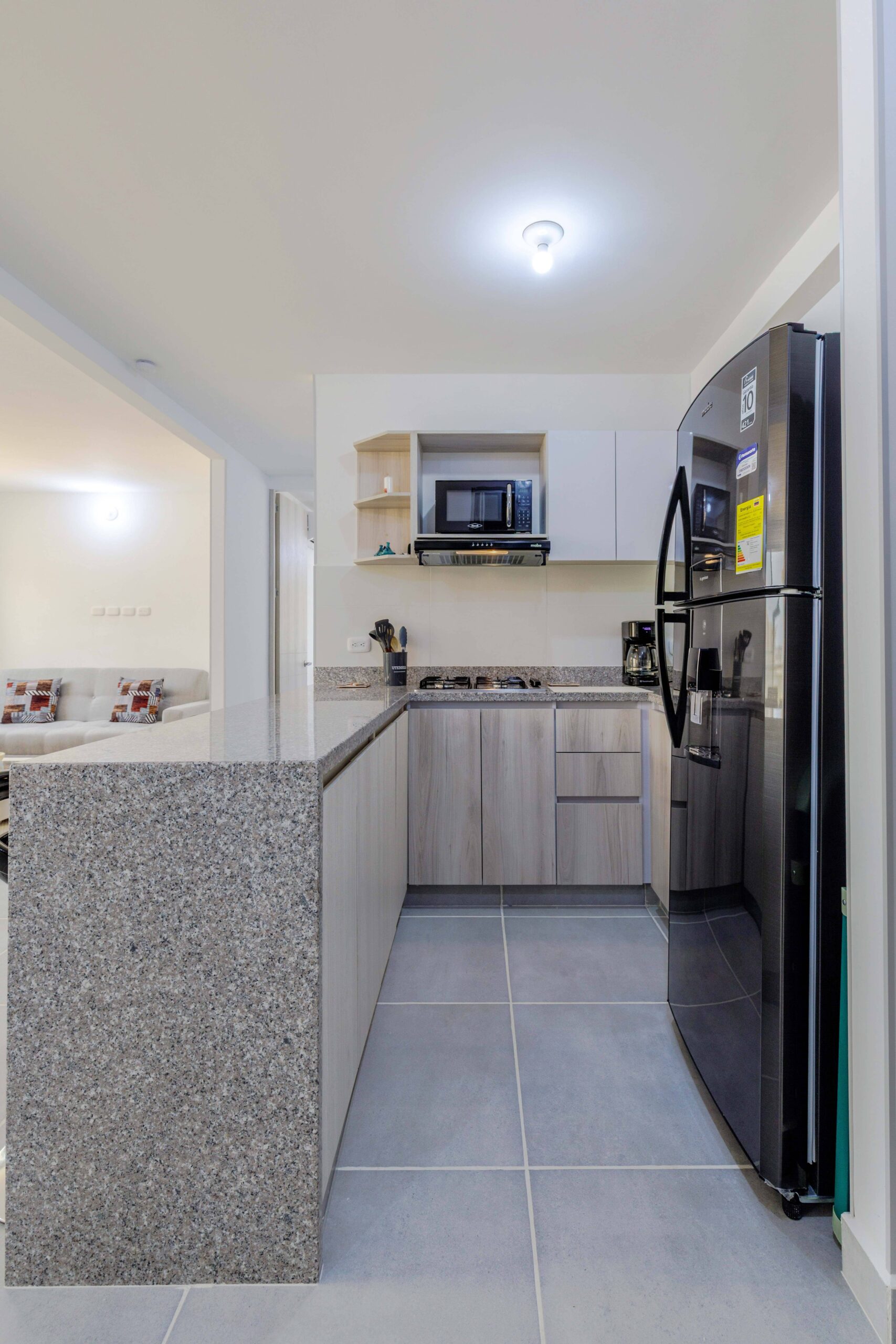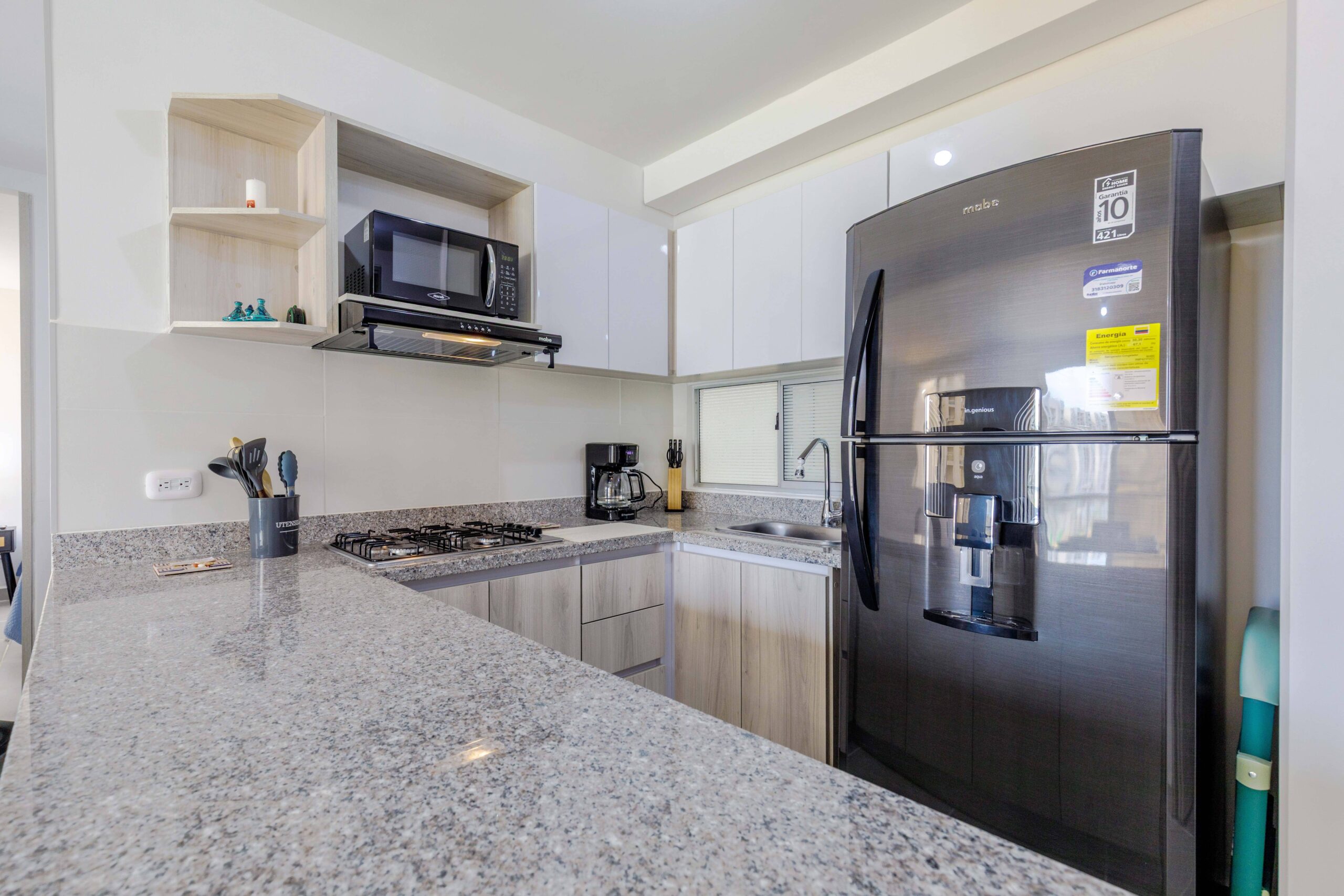 Esta moderna propiedad cuenta con un diseño tipo split, lo que permite una distribución ideal de los espacios. Al ingresar, te encontrarás con una cocina tipo americana con acabados de alta calidad, ubicada a la derecha, creando un ambiente abierto y funcional. A la izquierda, se encuentra el área de labores independiente, perfecta para mantener las tareas domésticas separadas del resto de la casa. Un paso más adelante, descubrirás un baño auxiliar y la habitación auxiliar con aire acondicionado, una zona cómoda y versátil que puede adaptarse a diversas necesidades.