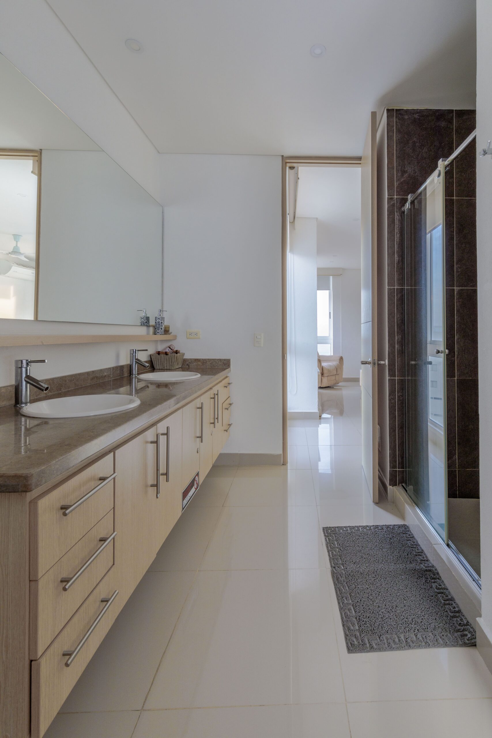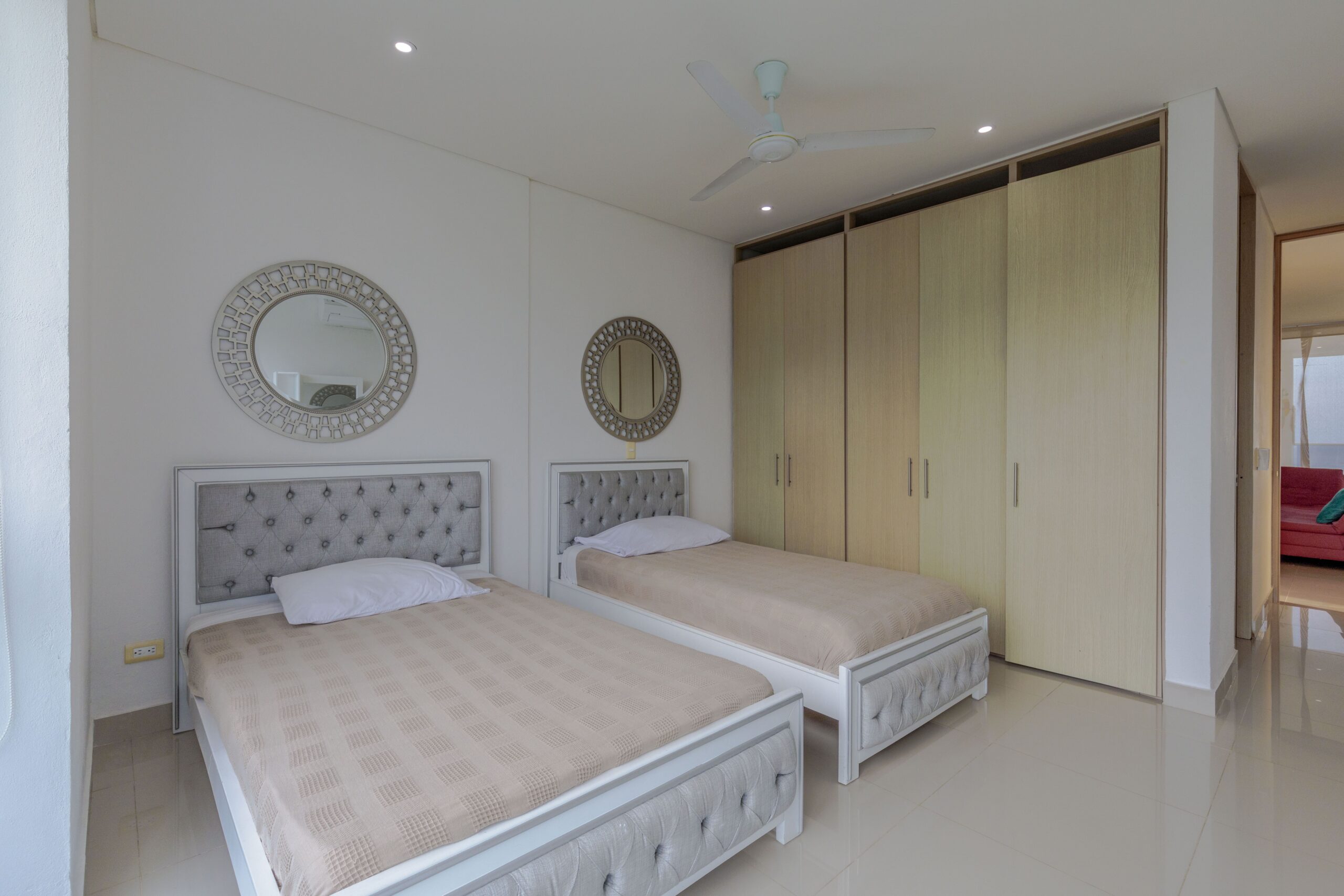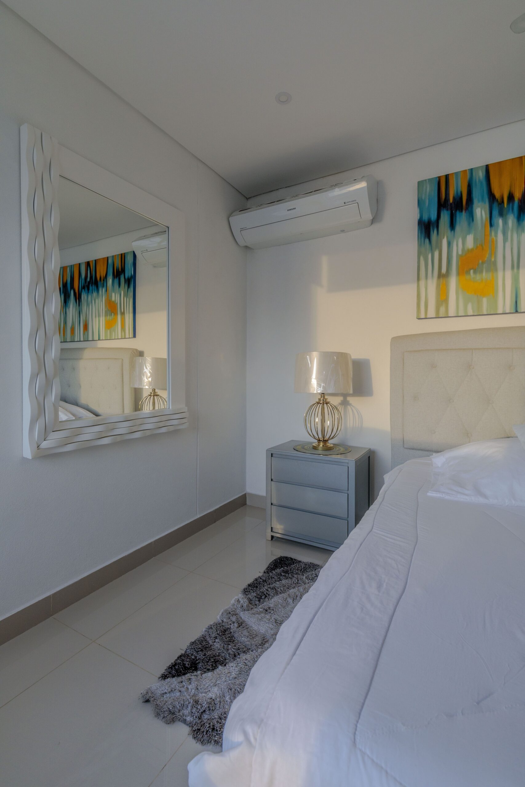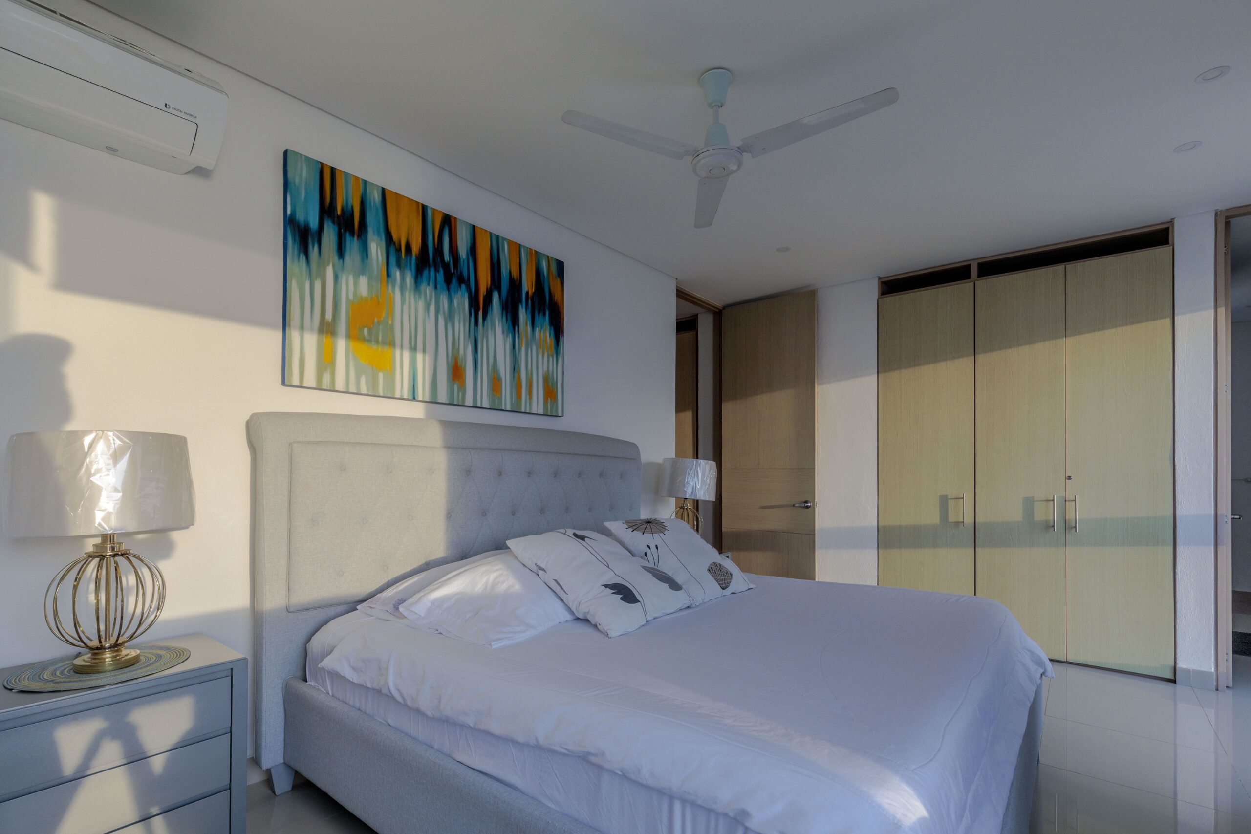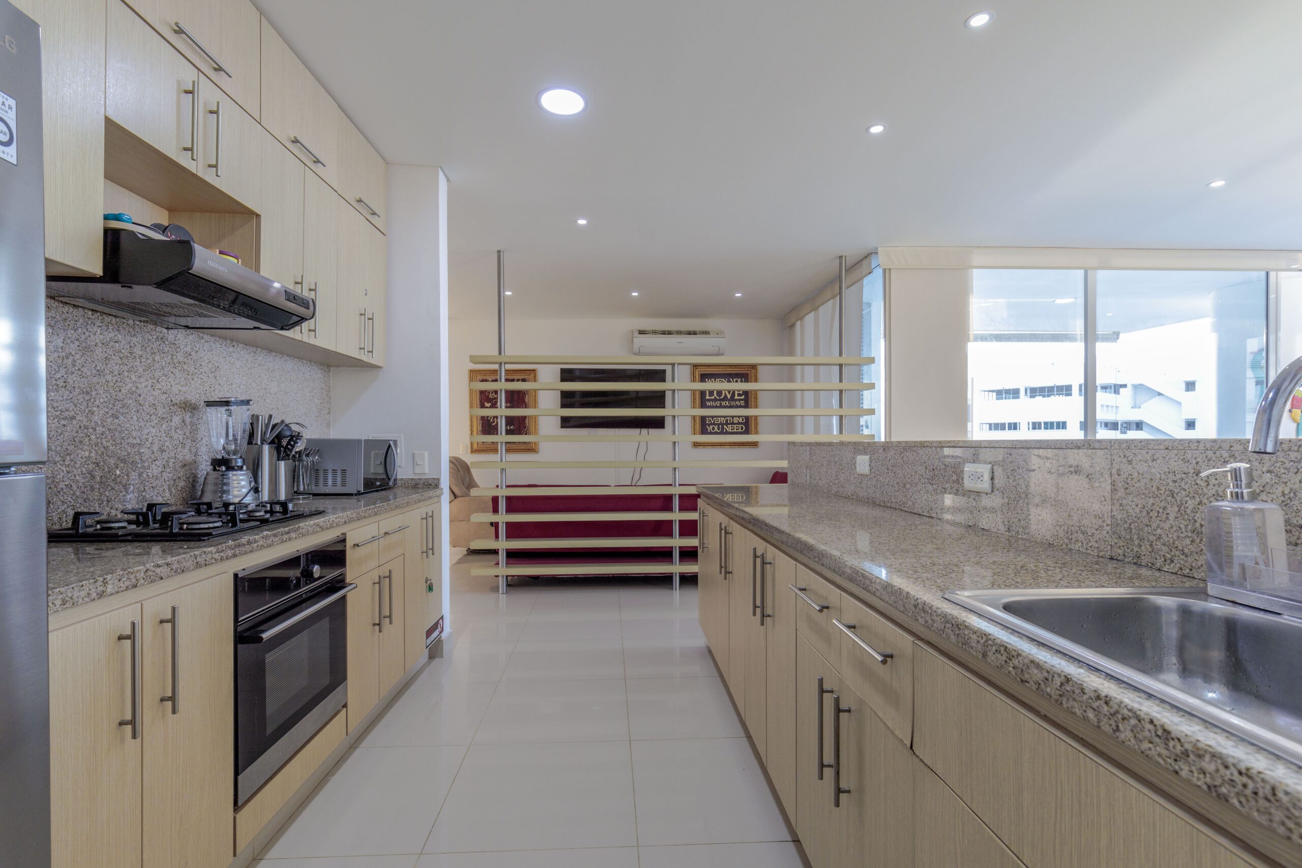 El apartamento dispone de 3 habitaciones, cada una con su propio baño interno. La sala de estar está equipada con dos sofás cama, conexión Wi-Fi, y televisión, y cuenta con un baño de visitas adicional. Además, el apartamento está climatizado con aire acondicionado central en todas las habitaciones. La cocina está completamente equipada con todos los implementos necesarios y ofrece un amplio espacio para las comidas. También incluye una lavadora y utensilios de aseo para tu conveniencia.