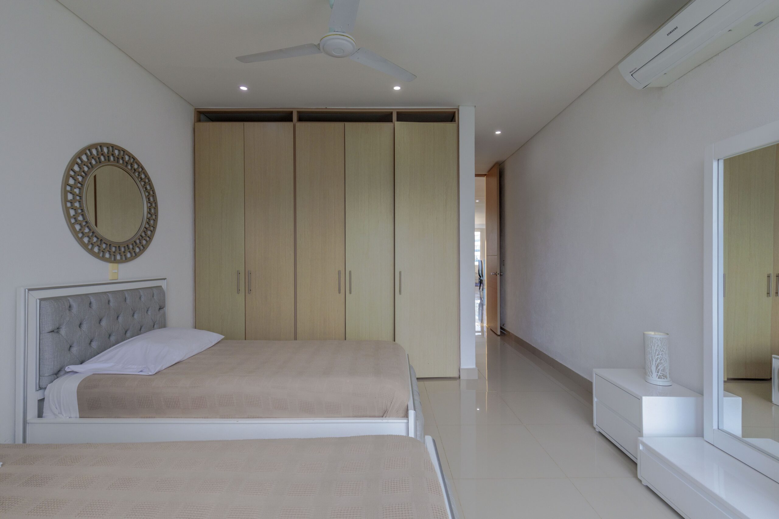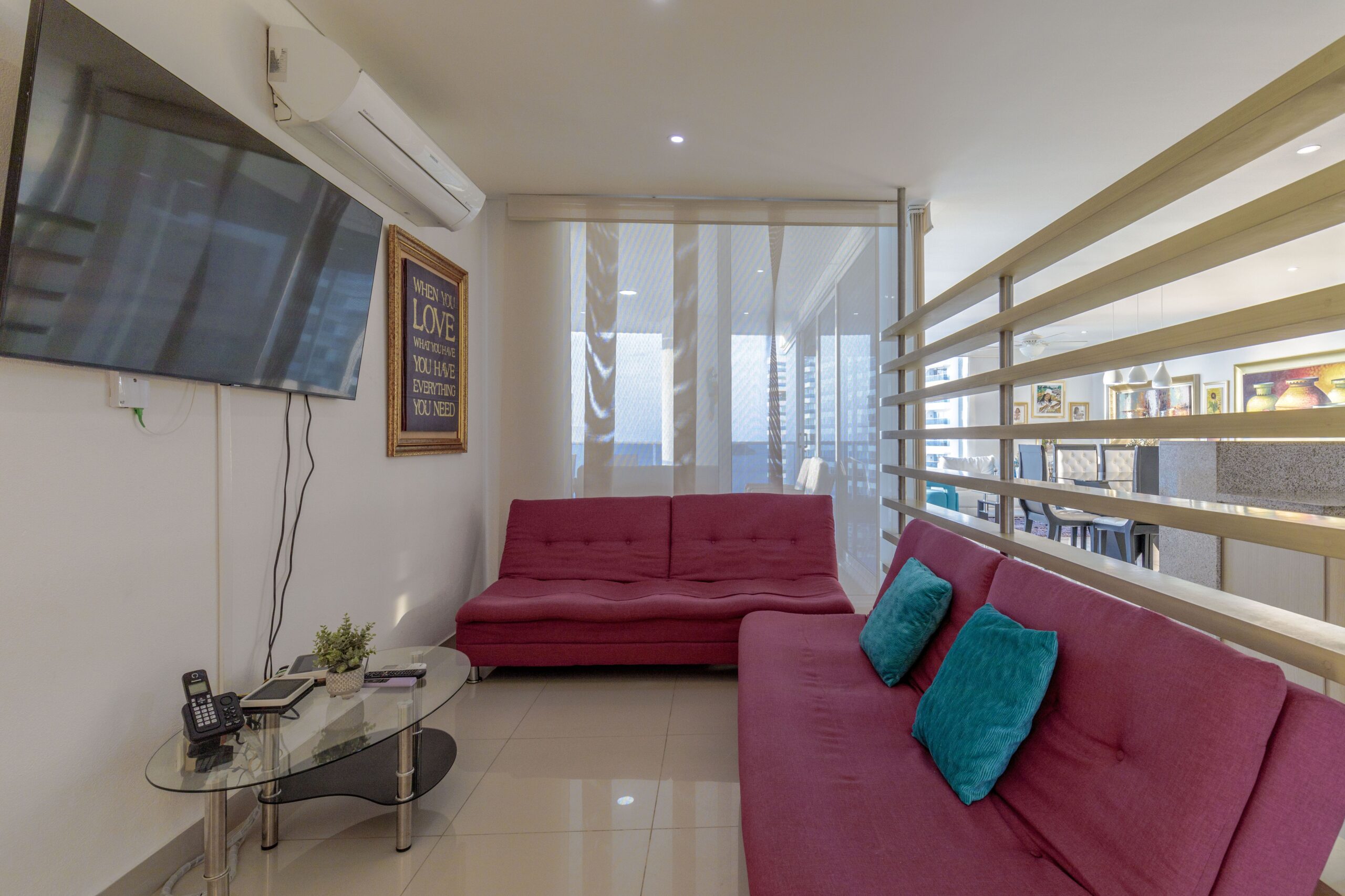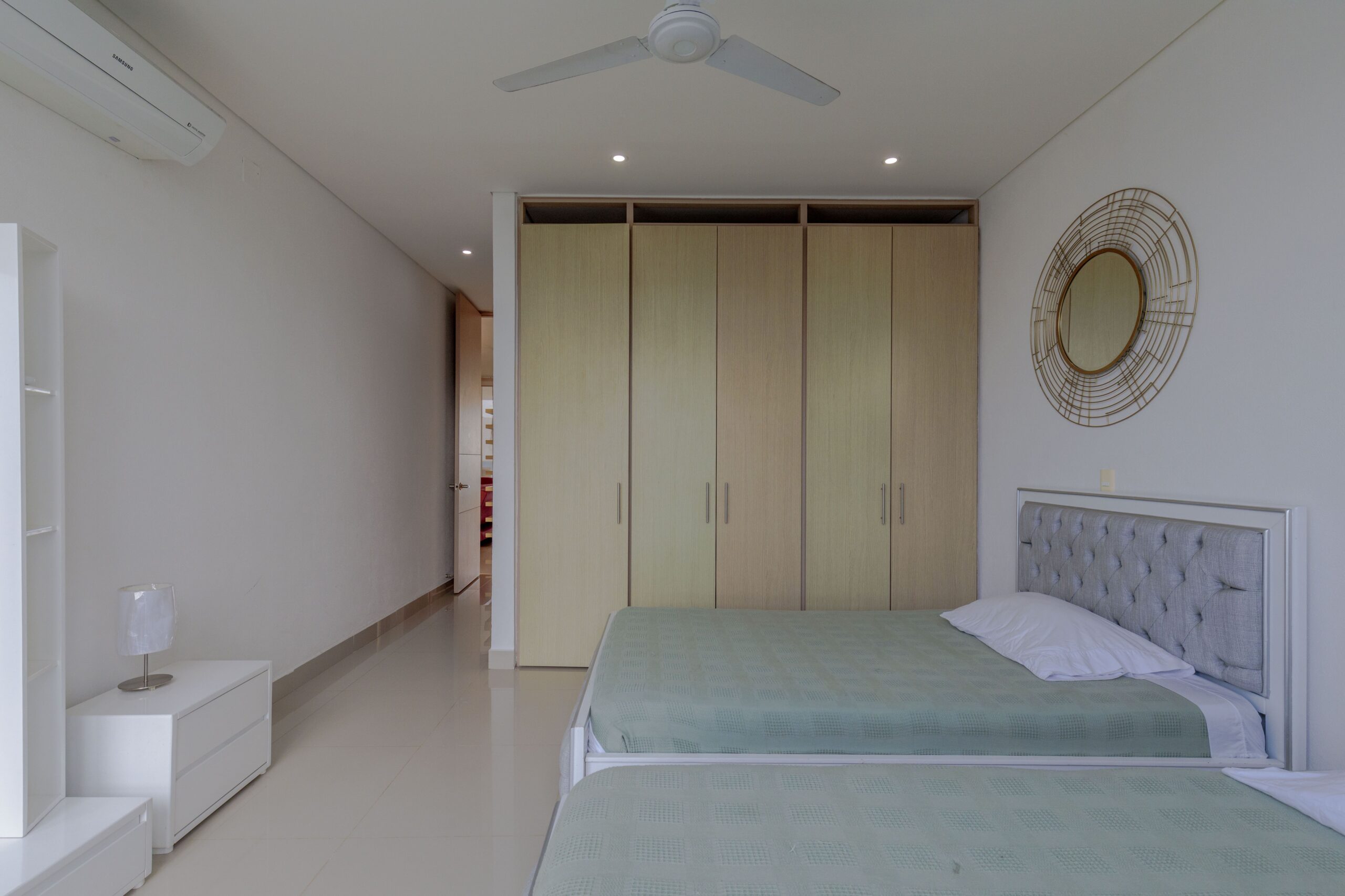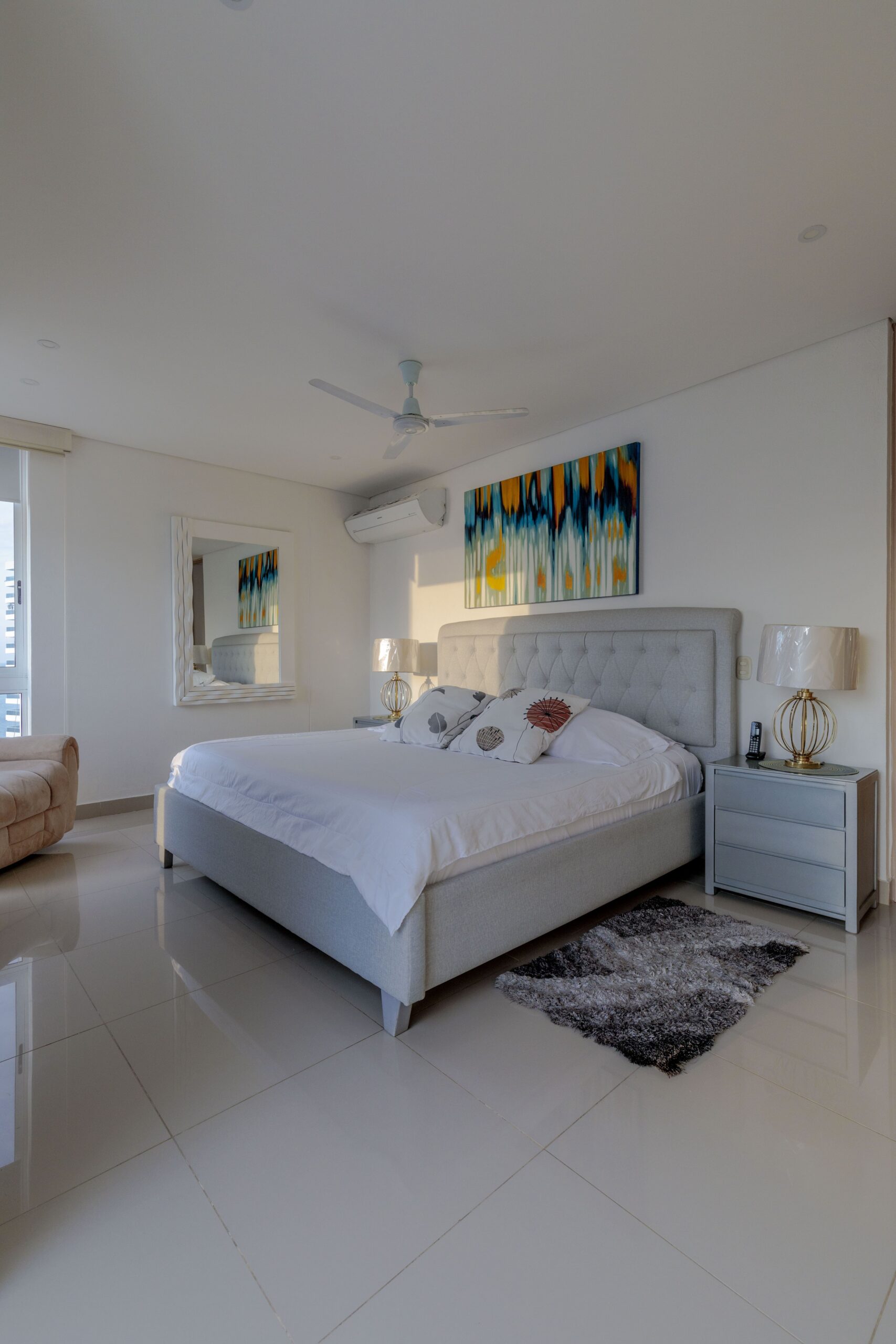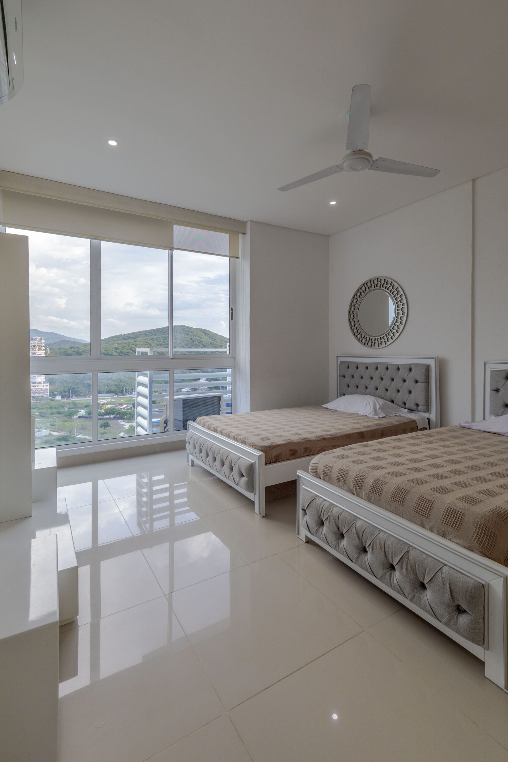 El apartamento dispone de 3 habitaciones, cada una con su propio baño interno. La sala de estar está equipada con dos sofás cama, conexión Wi-Fi, y televisión, y cuenta con un baño de visitas adicional. Además, el apartamento está climatizado con aire acondicionado central en todas las habitaciones. La cocina está completamente equipada con todos los implementos necesarios y ofrece un amplio espacio para las comidas. También incluye una lavadora y utensilios de aseo para tu conveniencia.