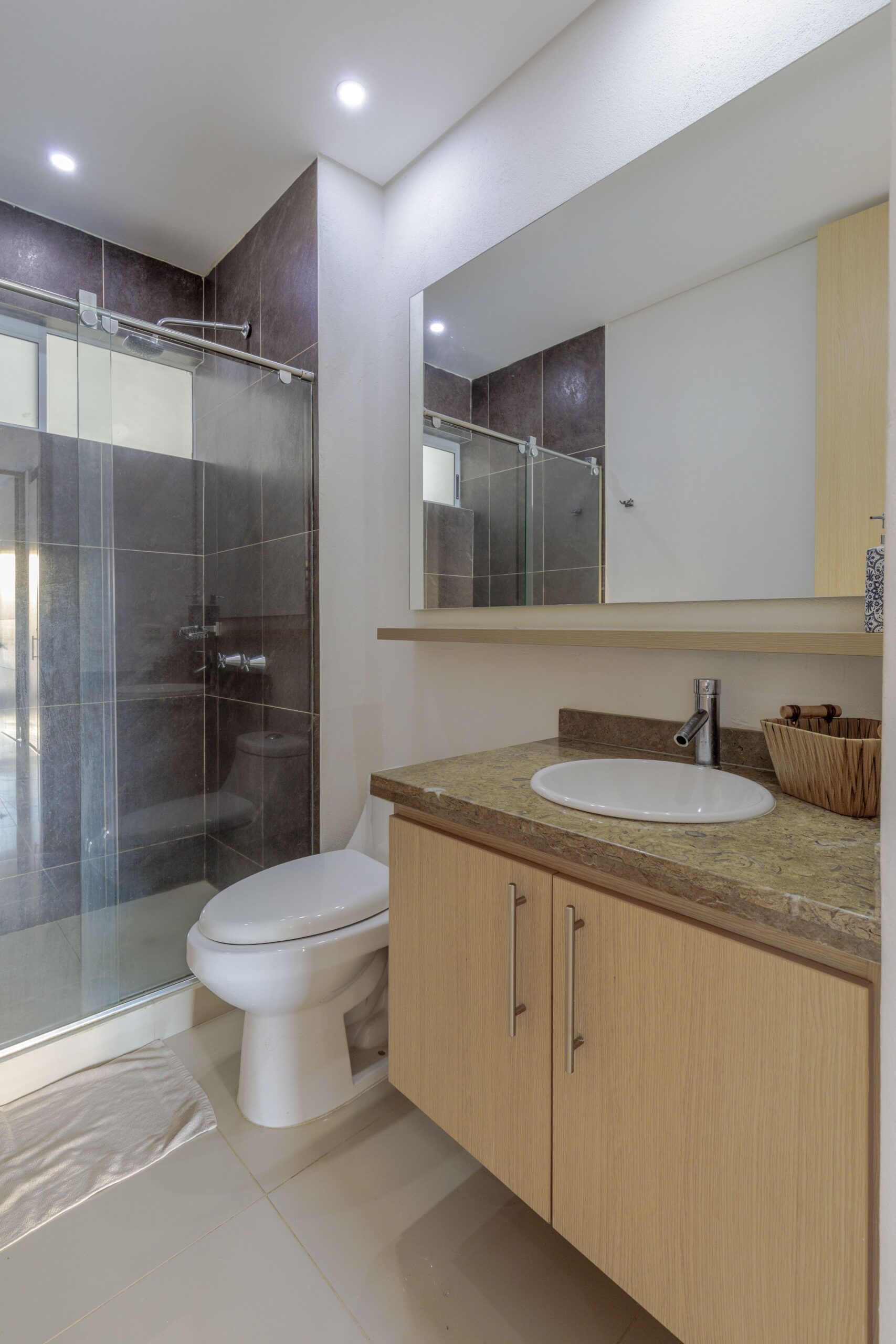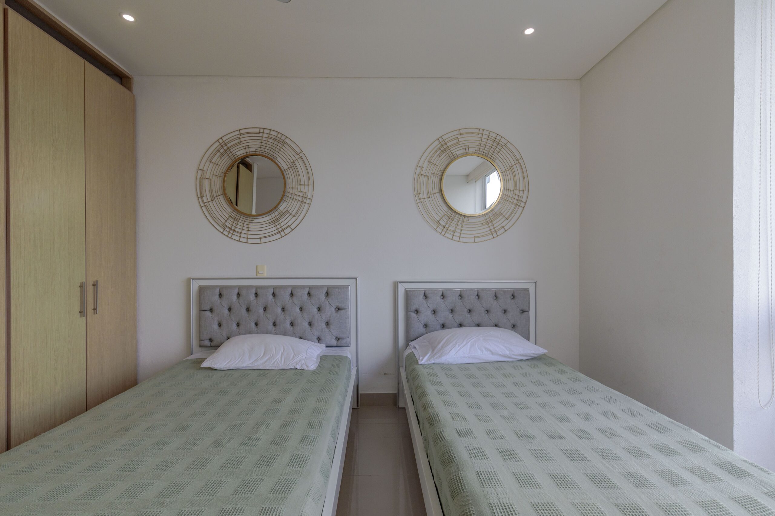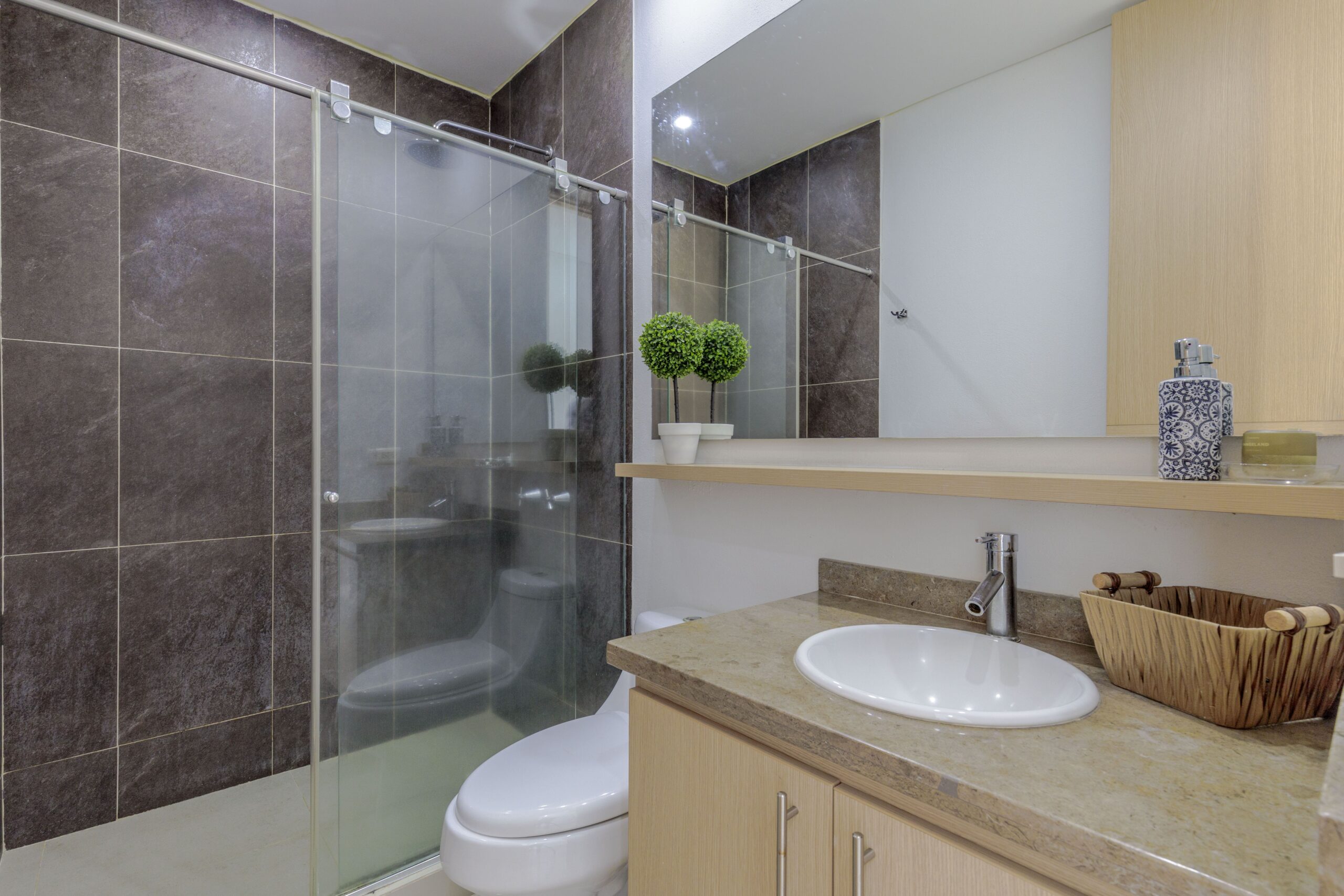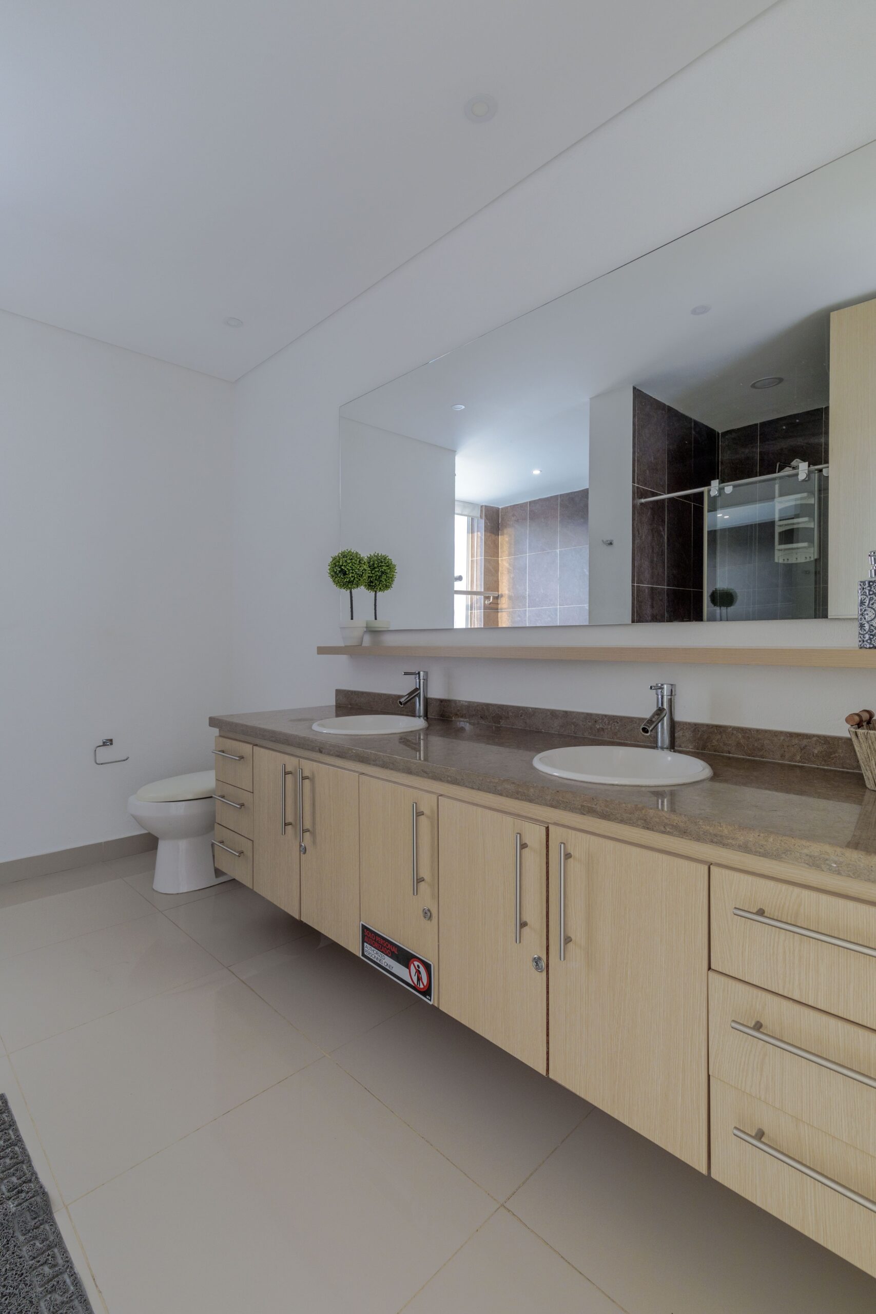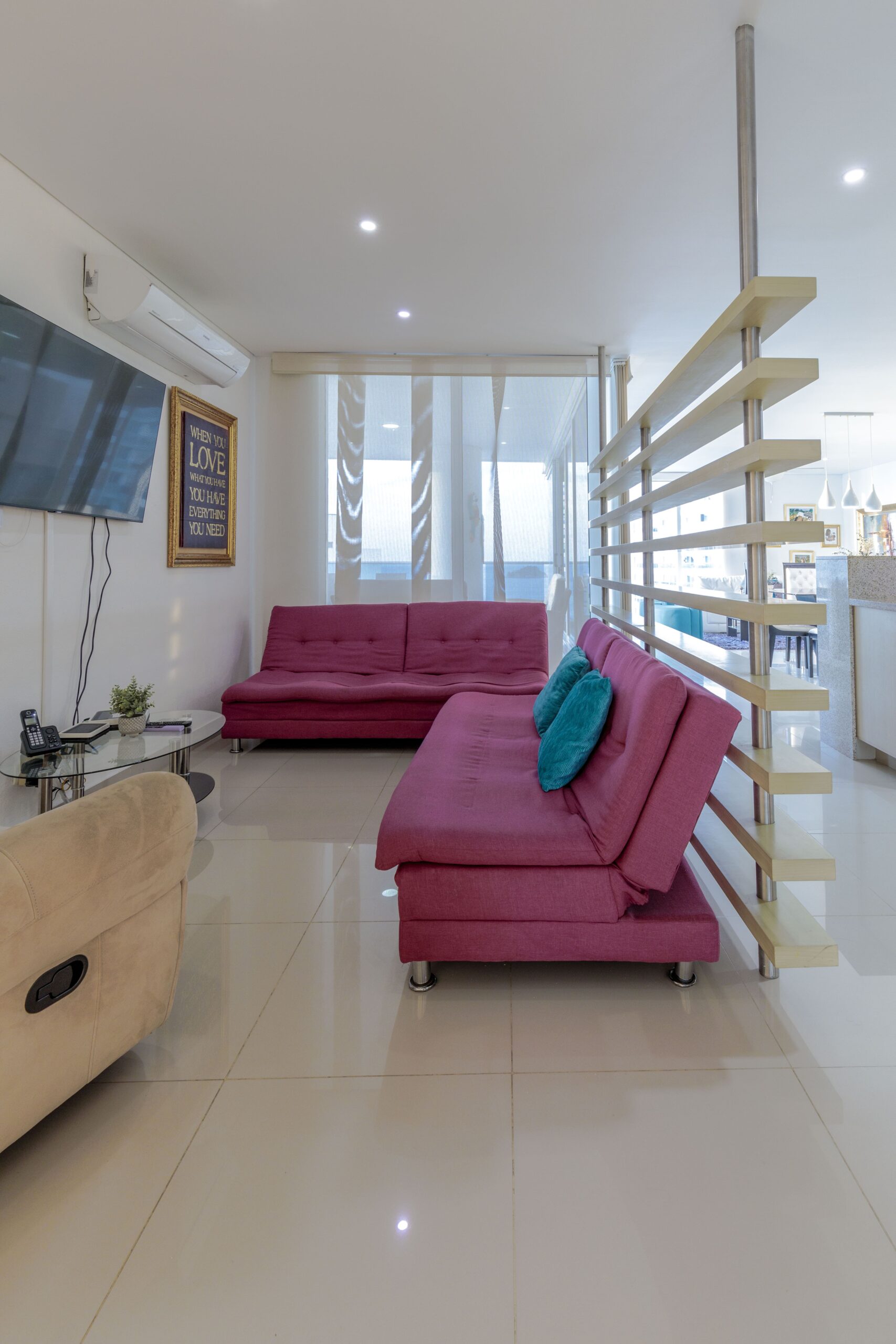El apartamento dispone de 3 habitaciones, cada una con su propio baño interno. La sala de estar está equipada con dos sofás cama, conexión Wi-Fi, y televisión, y cuenta con un baño de visitas adicional. Además, el apartamento está climatizado con aire acondicionado central en todas las habitaciones. La cocina está completamente equipada con todos los implementos necesarios y ofrece un amplio espacio para las comidas. También incluye una lavadora y utensilios de aseo para tu conveniencia.
