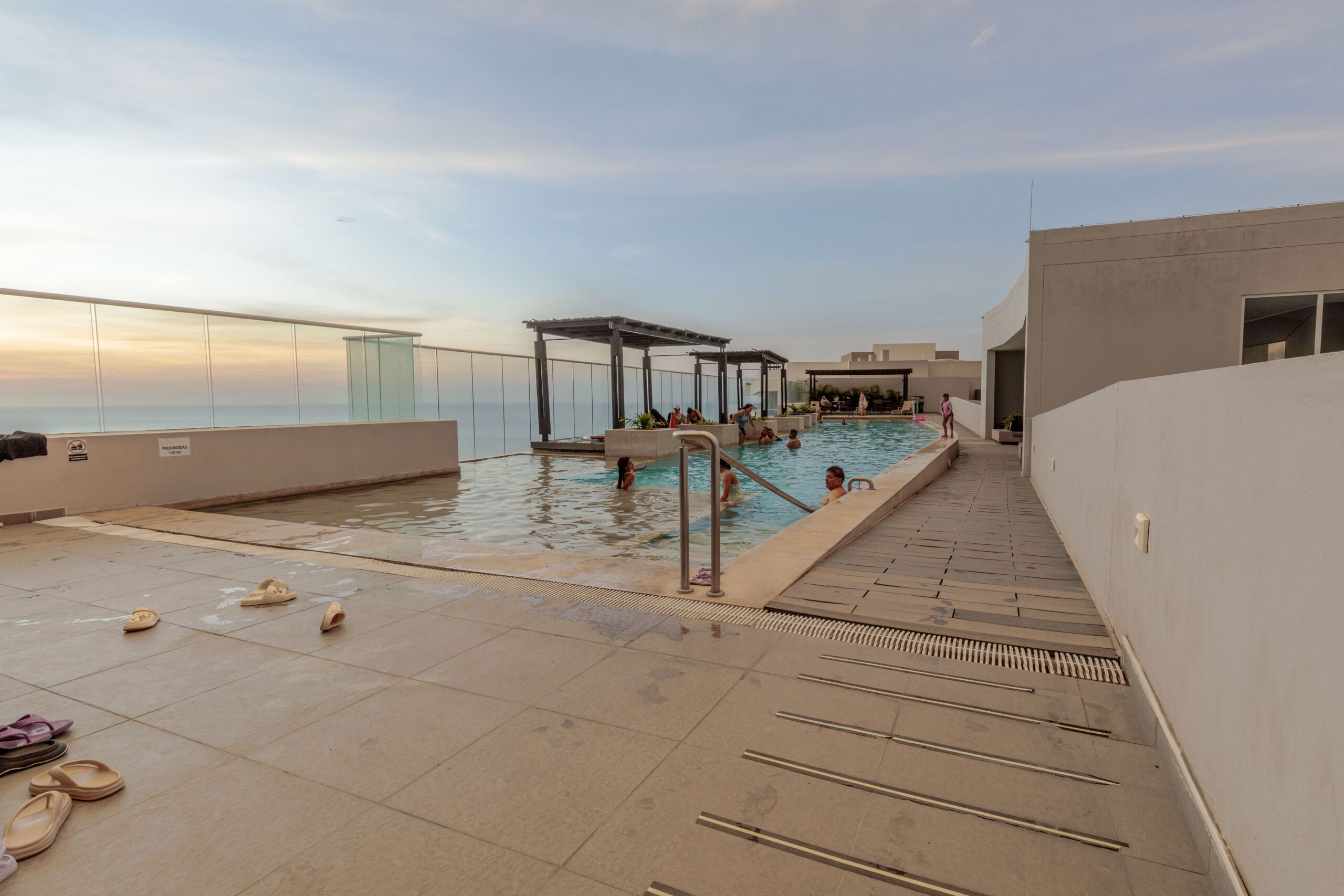 El edificio ofrece excelentes zonas comunes, que incluyen varias piscinas para adultos y niños, así como varios jacuzzis. Disfruta de la zona de masajes y peluquería (servicios adicionales con costo), así como de la zona BBQ y el restaurante. Además, cuenta con una playa privada, una zona para jugar voleibol en la playa, una cancha de fútbol, y un gimnasio bien equipado. También encontrarás una zona de juegos para niños, una zona de juegos para adultos y videojuegos.