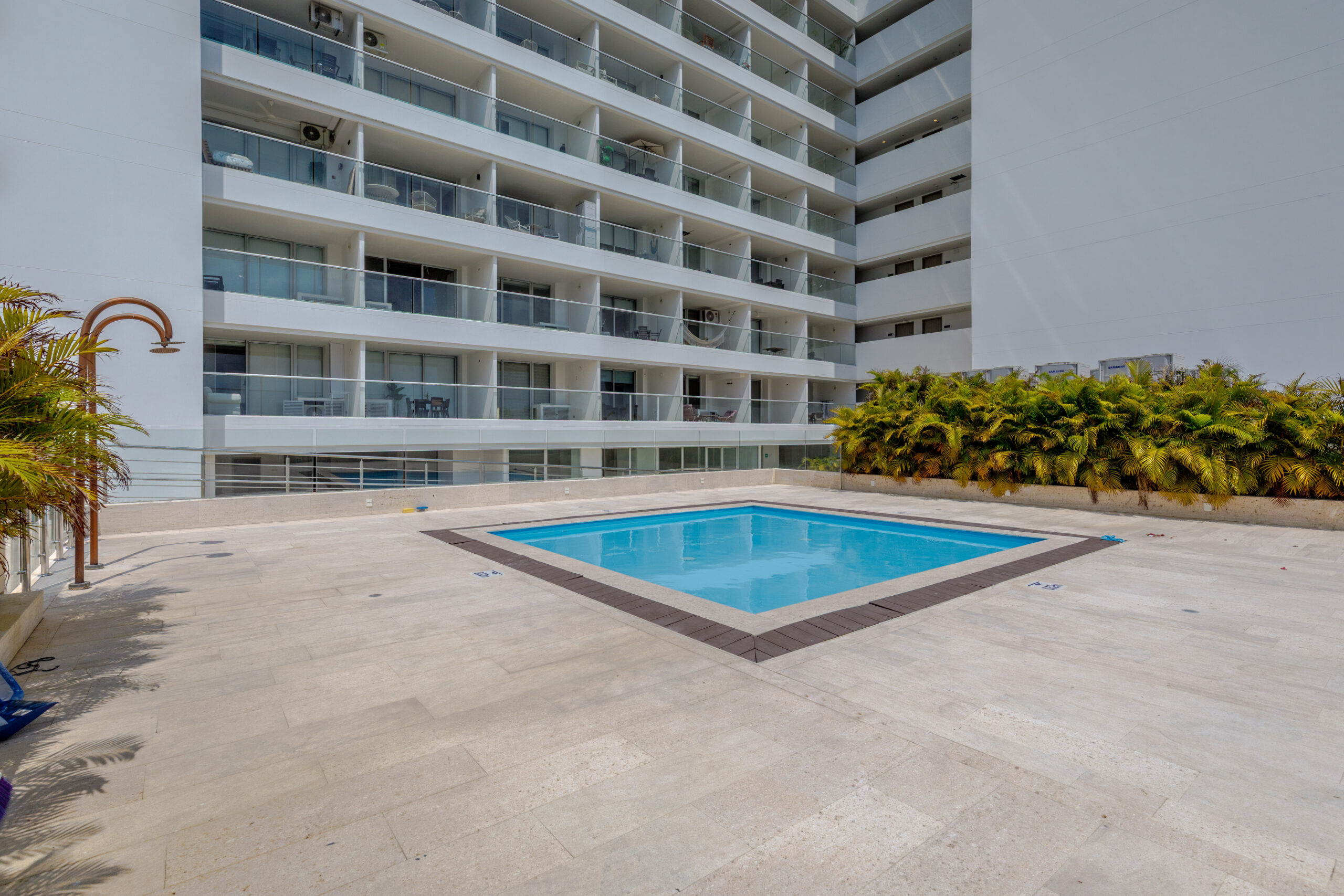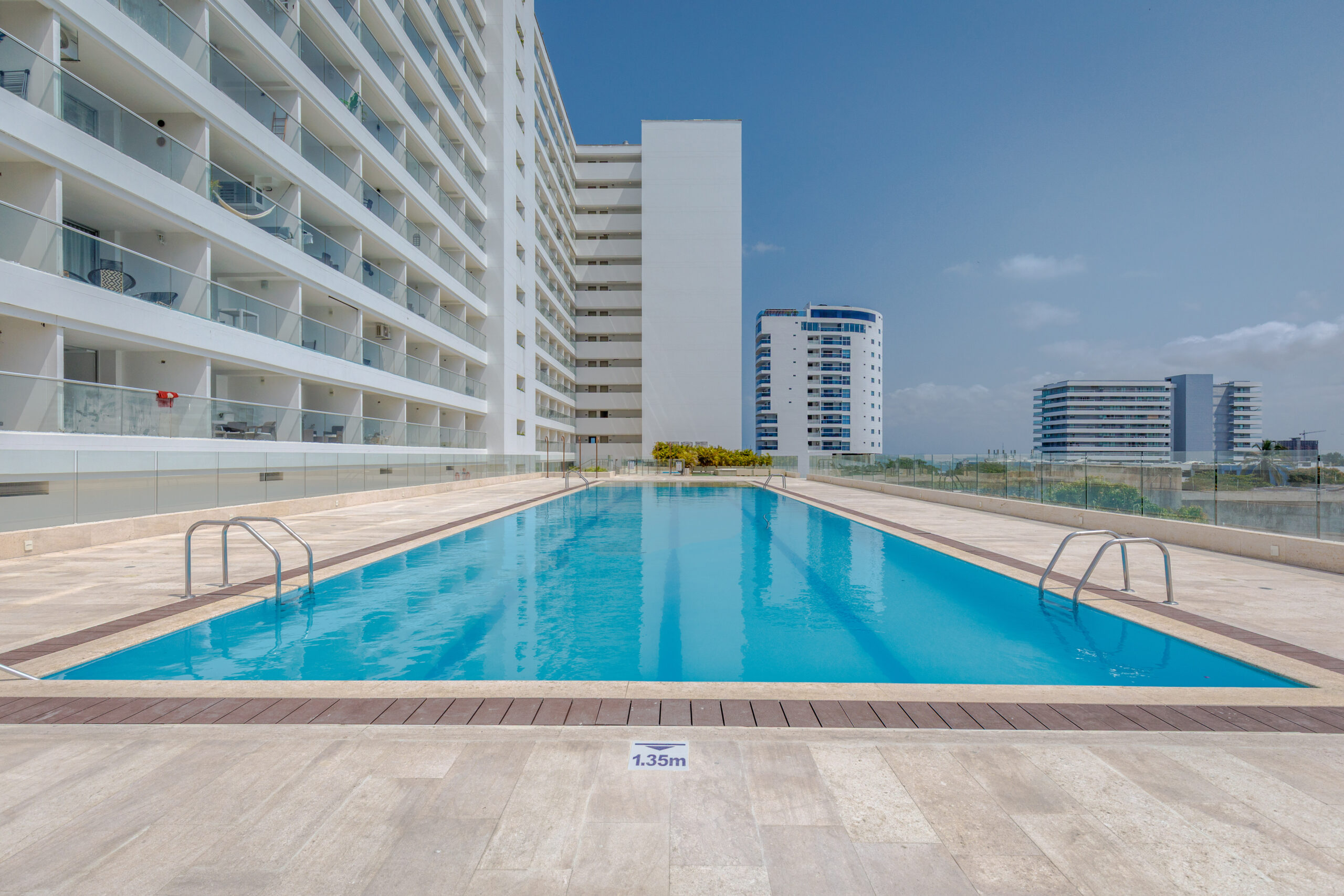Contamos con piscina para adultos y niños, jacuzzi, baño turco, sauna, parqueadero y vigilancia 24/7, lo que te permitirá relajarte con tranquilidad y aprovechar al máximo tu estadía.