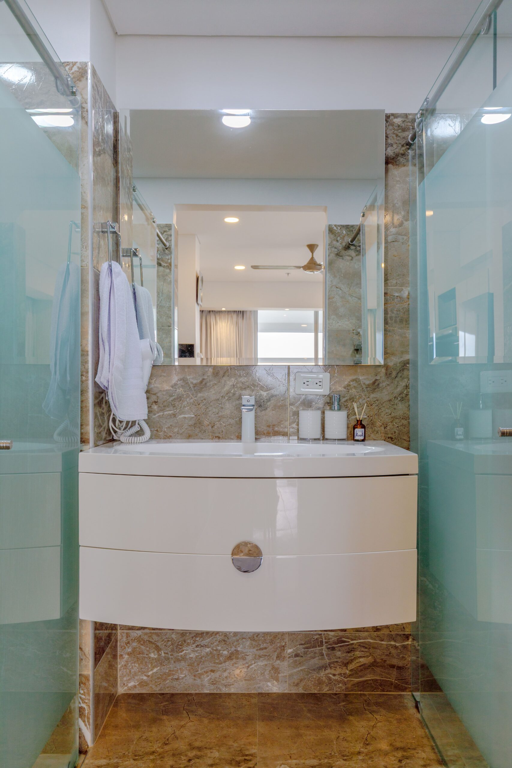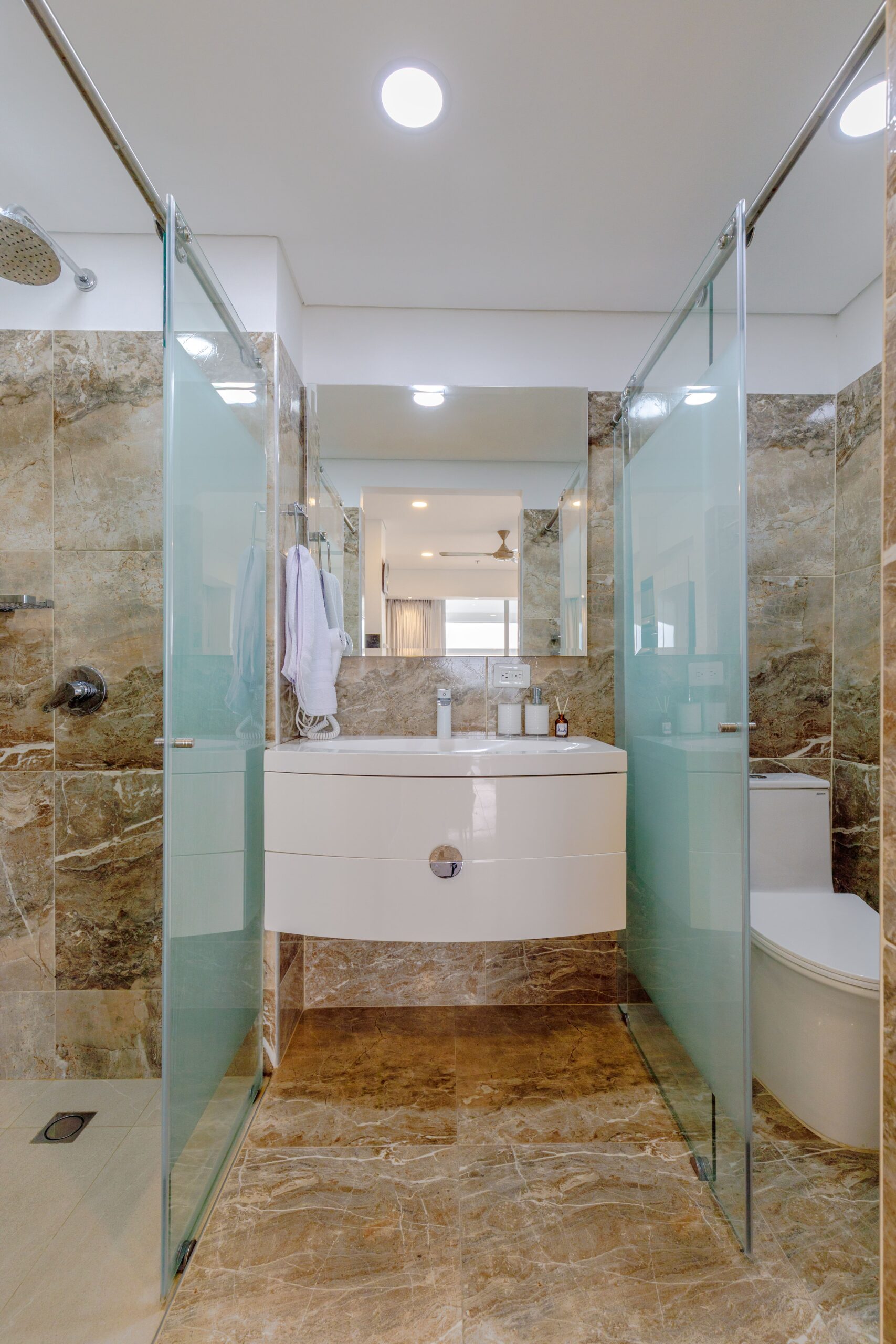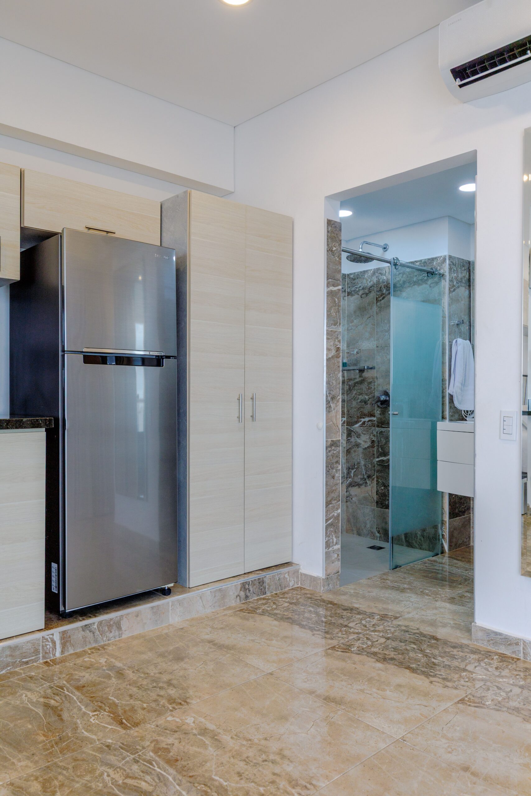 Nuestro apartamento cuenta con un sistema de ahorro energético que funciona con la llave: al retirarla, se corta automáticamente la energía para evitar consumos innecesarios. Por eso entregamos una sola llave. Te recomendamos colocarla al llegar para que el aire acondicionado enfríe el espacio mientras te instalas.