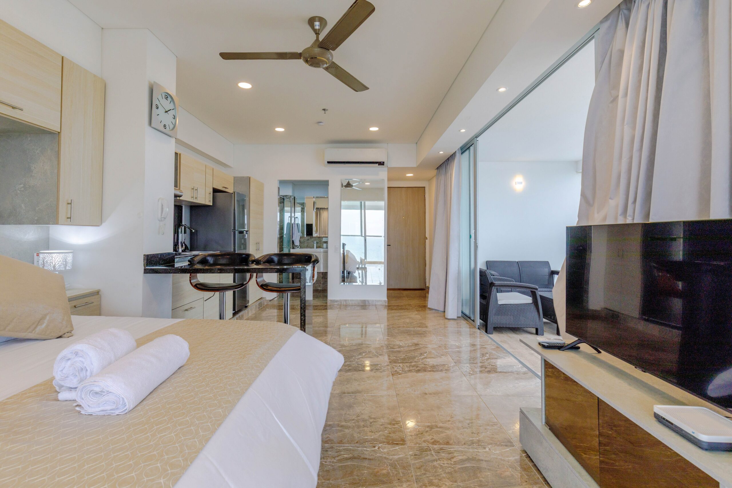 Disfruta de una hermosa suite frente al mar, ubicada en el exclusivo sector de Crespo, a solo 5 minutos caminando del aeropuerto Rafael Núñez. Ideal para viajeros que buscan comodidad, ubicación estratégica y una vista inolvidable.