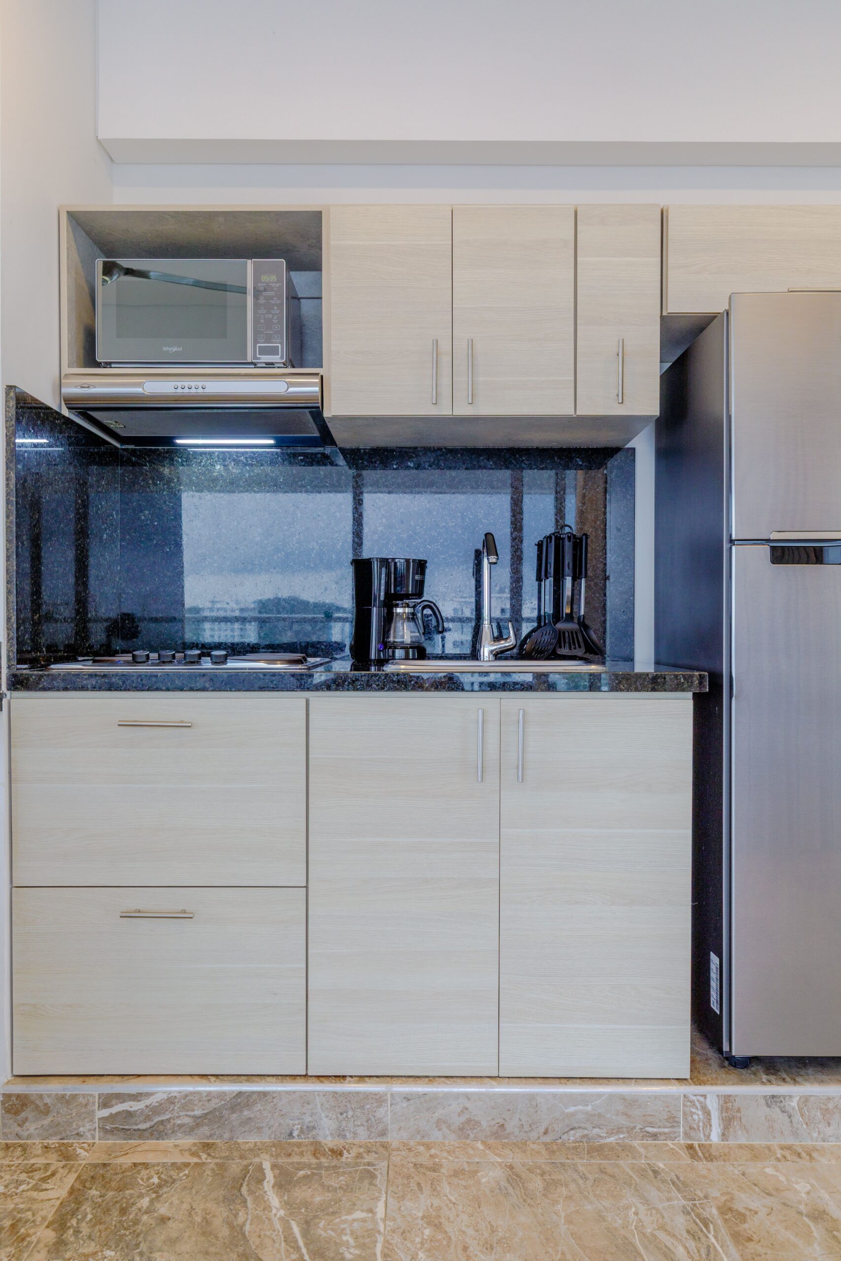 • Cocina totalmente equipada con nevera y utensilios para preparar tus comidas.